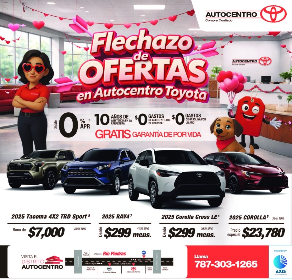 Todos los financiamientos y ofertas están sujetos a aprobación de crédito en adición a parámetros establecidos por la entidad de financiamiento. Ninguna oferta puede ser combinada con otras, ciertas restricciones aplican. Algunos modelos podrían no ser igual al ilustrado. Toda oferta mostrada y mencionada aquí son sujetas a aprobación de crédito. Unidades anunciadas son sujeto a disponibilidad de inventario. Ofertas válidas hasta el 15 de Febrero de 2026 o mientras duren las unidades.