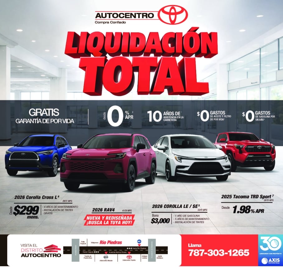 • Autocentro Toyota se reserva el derecho de modificar o cancelar el programa, sus términos y beneficios en cualquier momento.